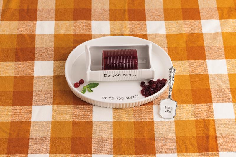• Ceramic dish with wells for homemade and canned cranberry sauce