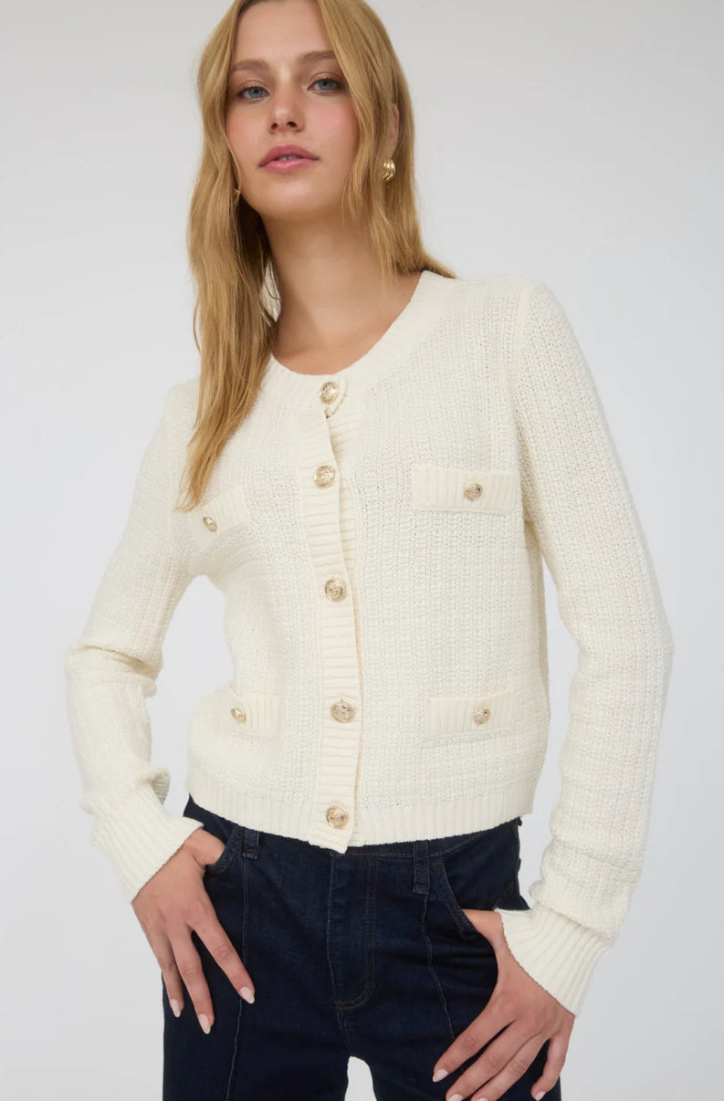 CREAM GOLD BUTTON DOWN POCKET DETAIL KNIT CARDIGAN