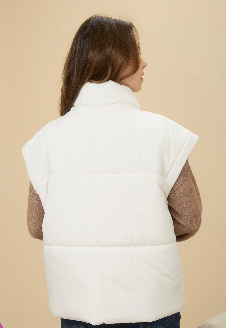 CREAM OVERSIZED SNAP BUTTON PUFFER VEST